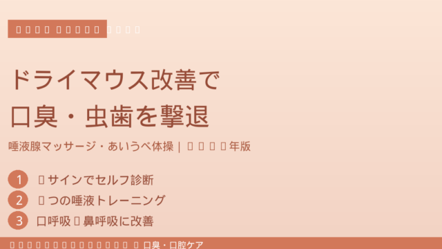 この記事では、口臭の4大原因、セルフチェック5項目、歯科で判明する病的口臭のサイン、市販の舌クリーナー・マウスウォッシュの選び方、そして即効性のあるケアから長期的な根本改善までを徹底解説します。読み終える頃には、自分の口臭タイプと最短ルートの対策が明確になります。