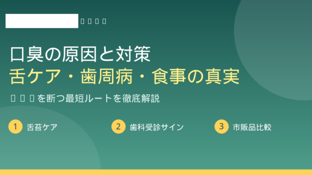 ドライマウスは放置すれば口臭・虫歯・歯周病をすべて悪化させる静かな爆弾です。しかし唾液腺マッサージ、あいうべ体操、口呼吸改善という3点セットで多くの場合改善できます。服薬中の方は主治医と歯科医に相談を。唾液は天然のマウスウォッシュ——大切に育てましょう。
