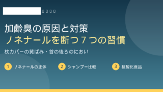 厳密には違います。加齢臭はノネナール(首の後ろ・耳の裏中心)、頭皮臭はジアセチルやマラセチア由来の成分が中心です。ただし40代以降は両者が重なって強いにおいになることが多く、共通の対策(抗酸化・皮脂管理・薬用シャンプー)が効きます。
